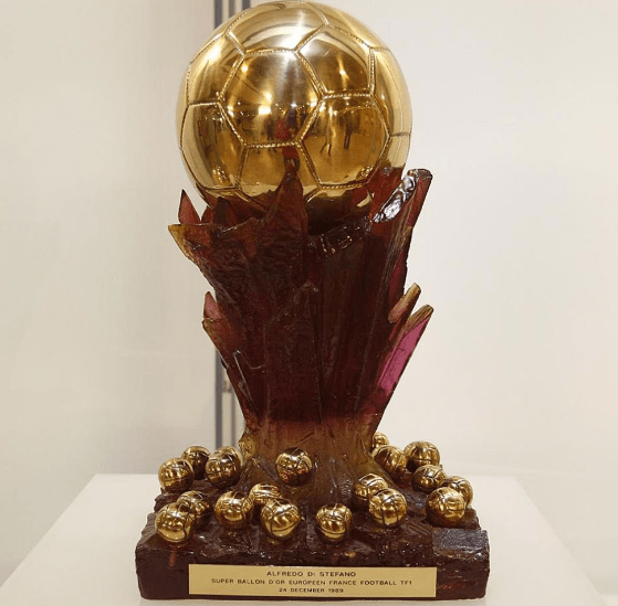 hier boven zie je de ballon d'or en de super ballon d'or. De super ballon d'or is nog maar een ik uitgerijkt aan di stefo maar ze zeggen dat hij weer in 2029 uitgerijkt word